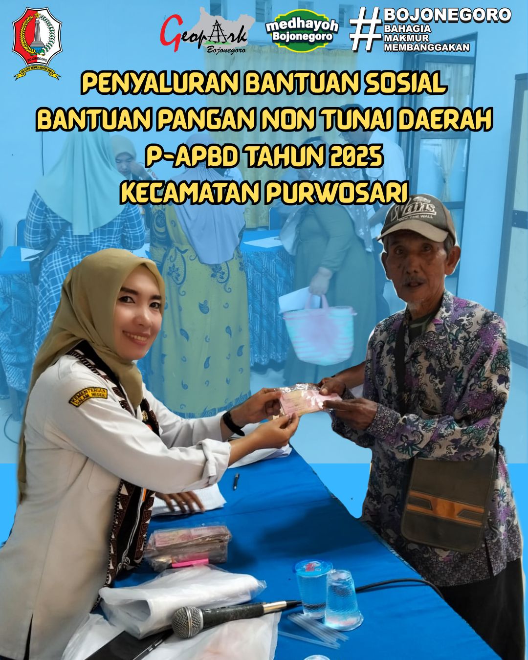 Purwosari-Hari ini Rabu,10/12/25 Penyaluran Bantuan Sosial Bantuan Pangan Non Tunai Daerah (BPNTD) yang bersumber dari P-APBD Tahun 2025 disalurkan di Kecamatan Purwosari Kabupaten Bojonegoro sebanyak...