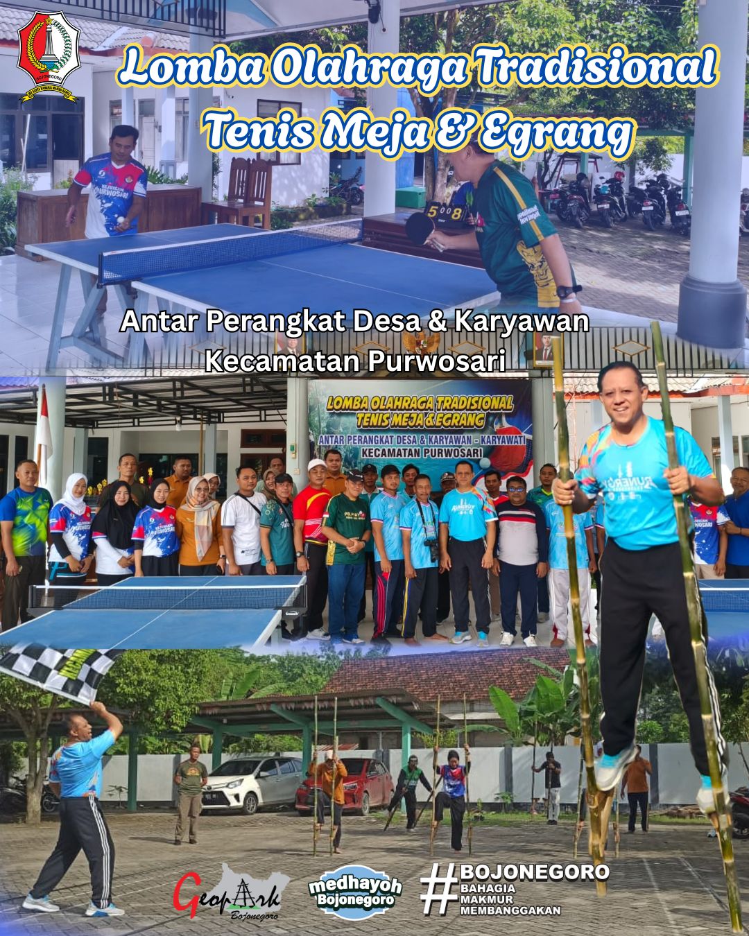 Purwosari-Hari ini Jum’at 12/12/25 acara Jum’at Sehat Kecamatan Purwosari mengadakan Lomba Tradisional Egrang dan Tenis Meja antar Perangkat Desa se-Kecamatan Purwosari dan Karyawan/Karyawati Kecamatan Purwosari,...