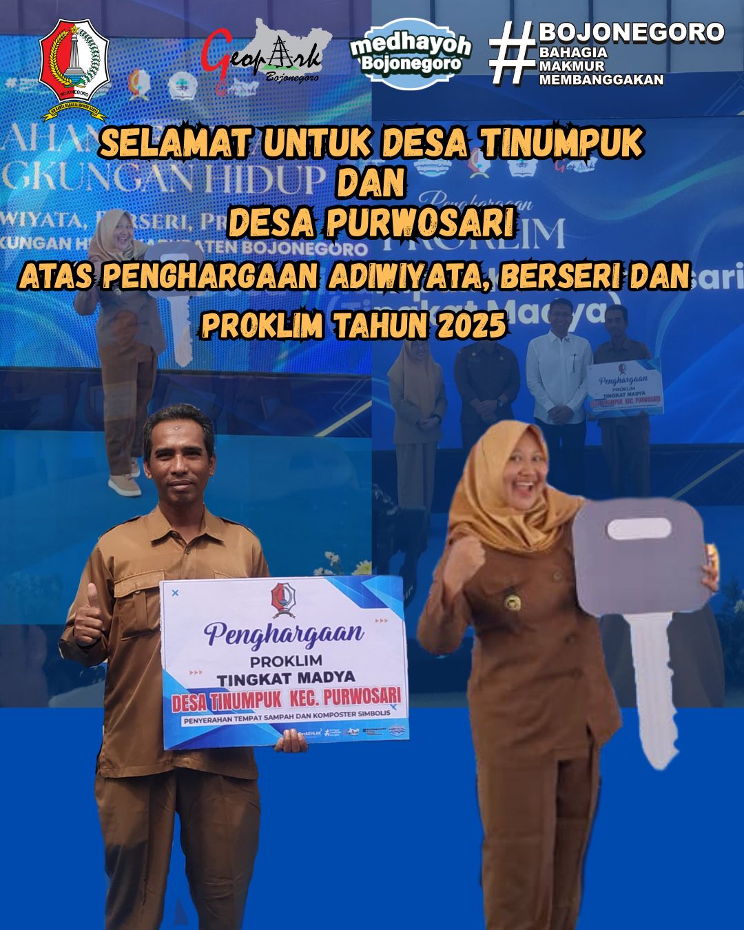 Purwosari- Selamat untuk Desa Tinumpuk atas perhargaan Proklim Tingkat Madya dan Desa Purwosari atas penghargaan Desa Berseri Tingkat Propinsi Jawa Timur. Proklim adalah program nasional dari...