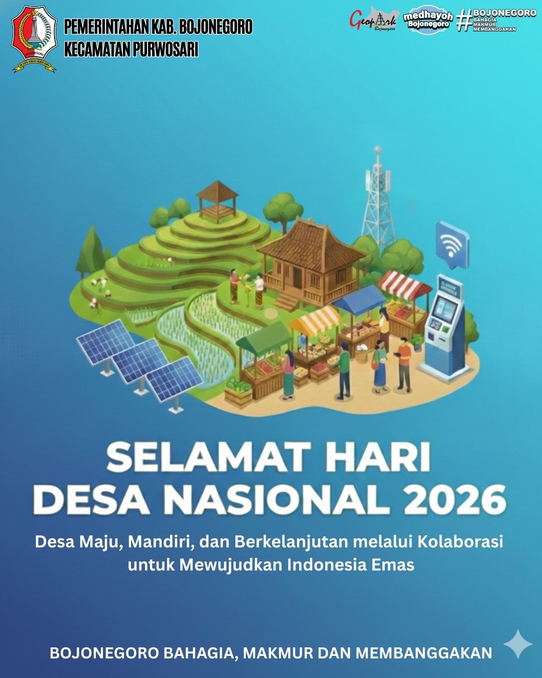 Selamat Hari Desa Nasional Tahun 2026, Desa Maju, Mandiri dan Berkelanjutan melalui kolaborasi untuk mewujudkan Indonesia Emas BOJONEGORO BAHAGIA, MAKMUR DAN MEMBANGGAKAN...