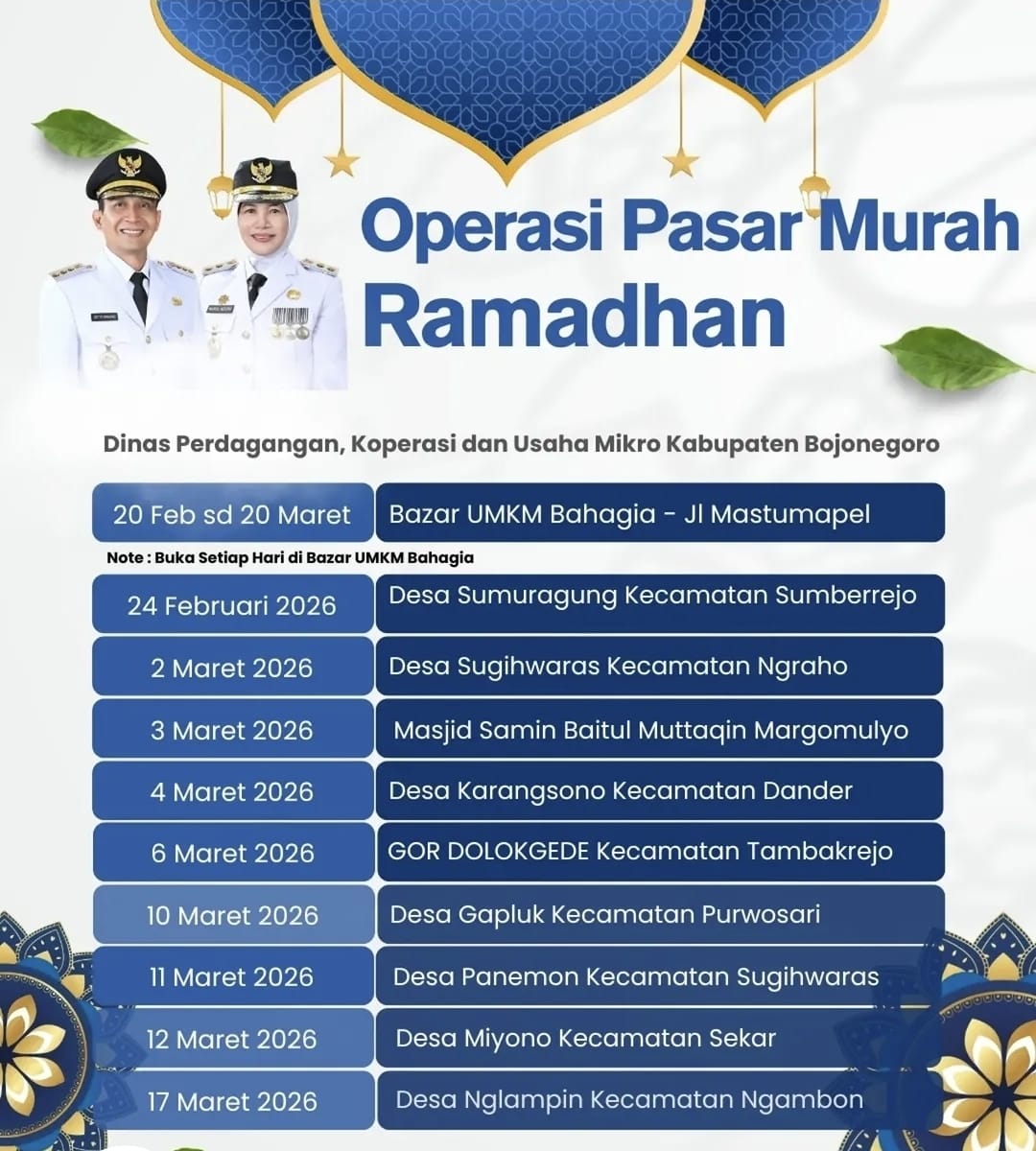 Purwosari-Jadwal Pasar Murah Pemerintah Kabupaten Bojonegoro di Kecamatan Purwosari dilaksanakan di Balai Desa Gapluk Kecamatan Purwosari Hari Selasa Tanggal 10 Maret 2026 mulai pukul 09.00...